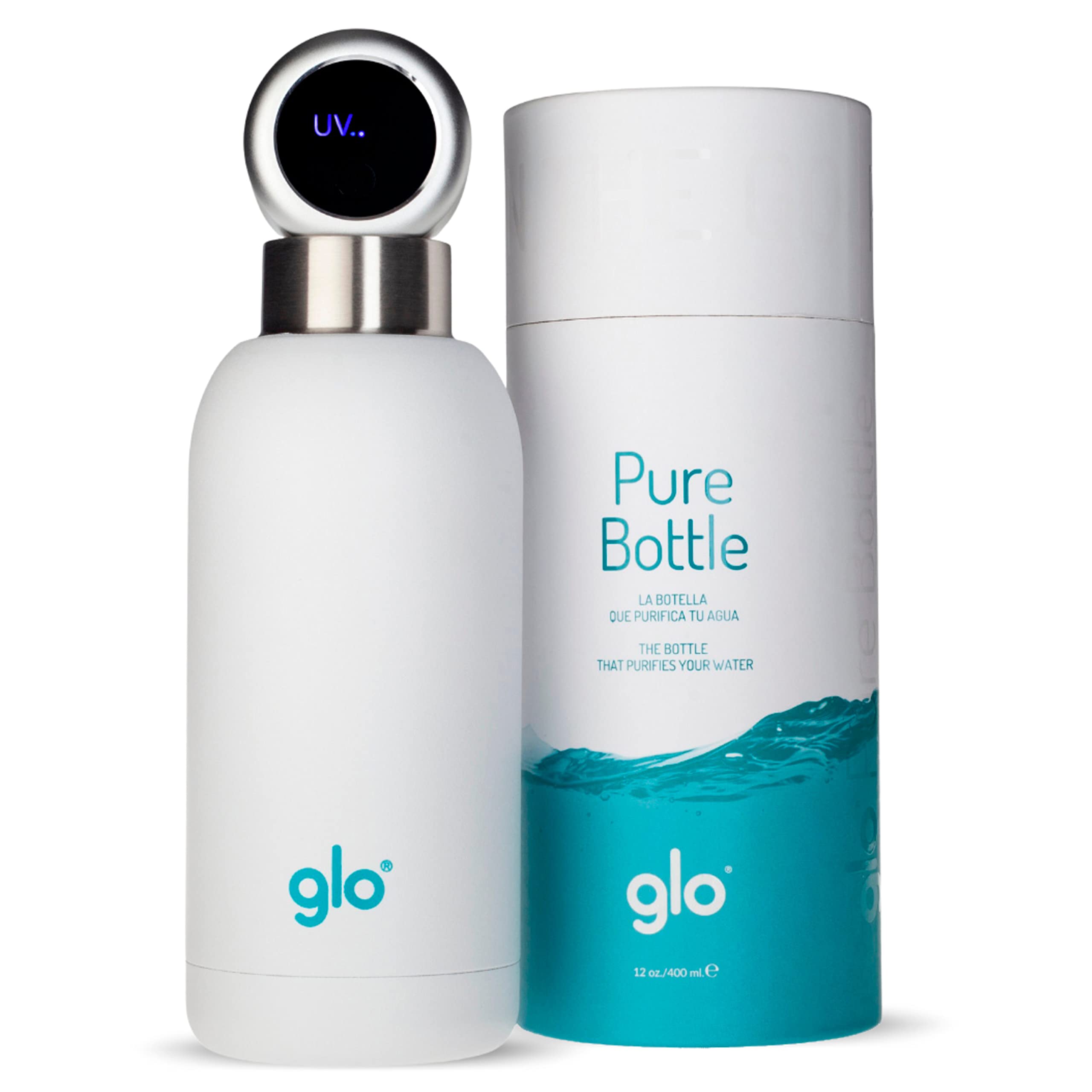 Amazon Com Glo Water Purifying Bottle Eliminates Bad Odor And Taste Without Cleaning Stainless Steel Bpa Free 400ml Keeps Water Hot 12h And Cold 24h Perfect For Camping